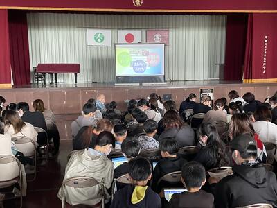 5年生の総合的な学習の時間で、地球環境問題について、各自でテーマを決めて調べました。この時間では、自分の調べた内容を発表しています。
