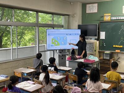 クイズやゲーム的要素を取り入れながら、学習への意欲を高めながら英語の授業をおこなっています。