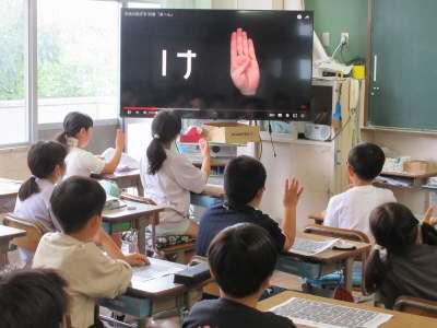 4年生では、総合的な学習の時間で「指文字」について、学習をしていました。