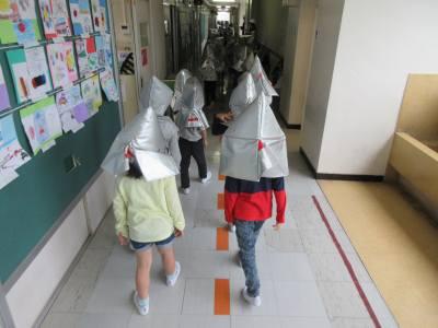 14:50 バスは無事に学校に到着しました。熱中症予防のため、閉校式は到着前のバスの中で済ませて、子供たちはすぐに下校します。