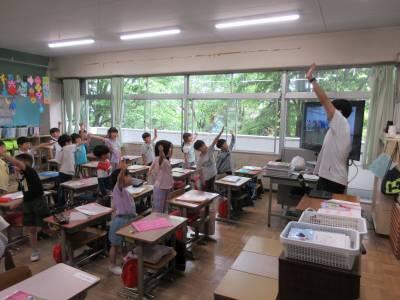子どもたちも、講師の先生から出される質問に周囲の友達と積極的に話し合い、発言していました。