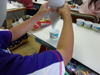 1年生が図工の時間にどろどろ粘土を使った作品作りをしています。