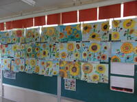 子供たちの描いた絵画の作品が次々と仕上がり、各教室の廊下への掲示がはじまりだしました。
