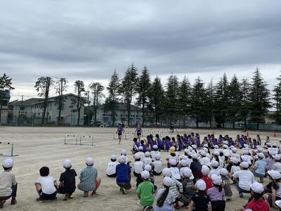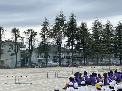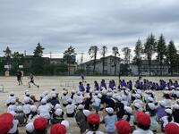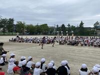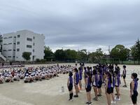 明日は、市内陸上大会がおこなわれます。今日の朝は、大会に参加する選手を応援する壮行会がおこなわれました。