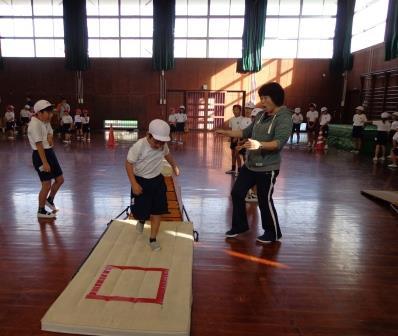 跳び箱教室がありました。30分ほどの短い時間でしたが、教える方も教わる方も、どんどん上手になっていきました。