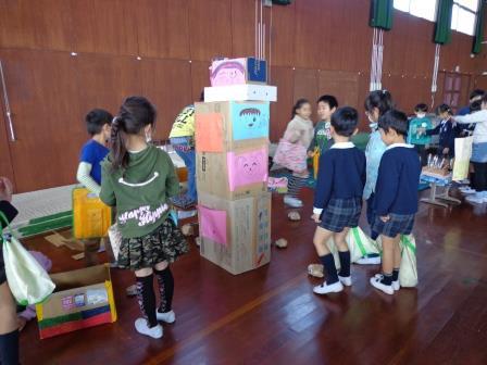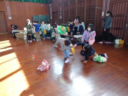 1.2年生が幼稚園のお友だちを招待し、いっしょに遊びました。なかよく楽しく、遊ぶことができました。