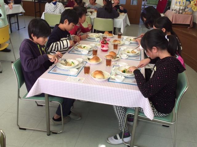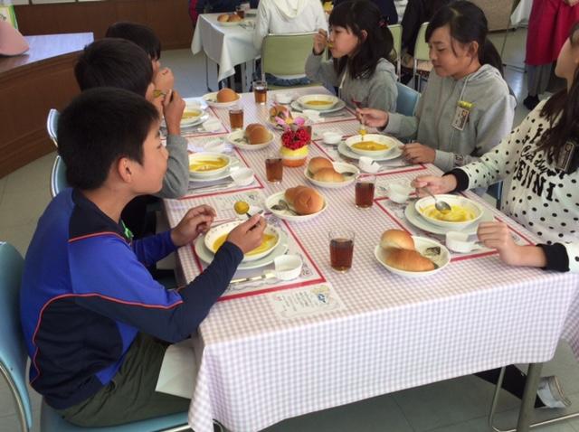 5年生が、テーブルマナーを学ぶ場として、マナー給食を行いました。