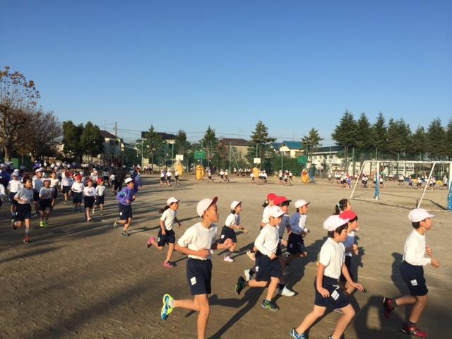 寒い朝ですが、雲一つ無い青空の下、子どもたちは、がんばって体を鍛えています。
