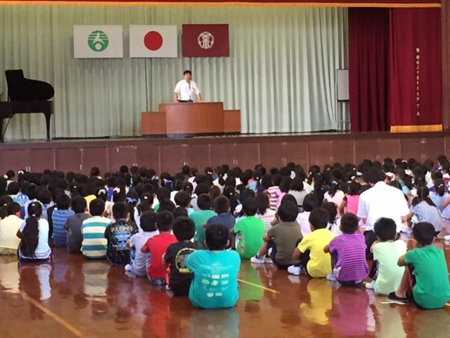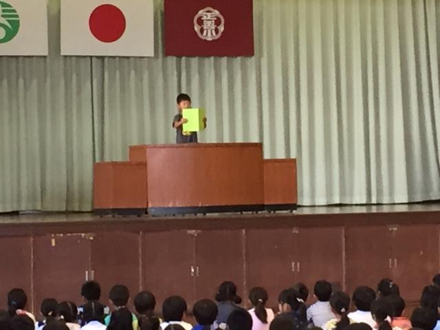 42日間の夏休みを終えて、2学期がスタートしました。始業式では、校長先生のお話のあと、2年生と5年生の代表児童が、2学期のめあてを発表してくれました。すばらしい発表に全校から大きな拍手が送られました。