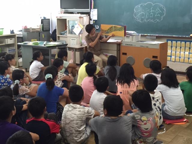 2学期も月曜日の読書タイムには、春日部お話会の方が来ていただき、読み聞かせやお話を聞かせてくださいます。ろうそくの灯火の中、子どもたちは、お話の世界にしっとりと入り込んで聞いています。
