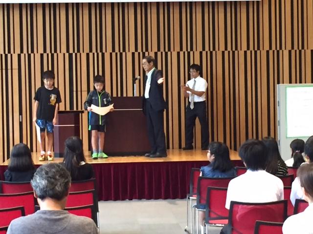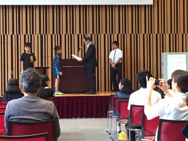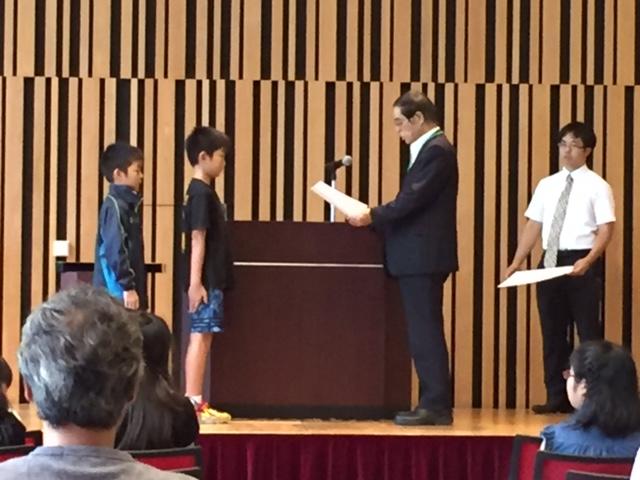 正善小からも4点の作品が出品されましたが、その中で、4年生の天野耀優さんとと2年生の天野馨優さん兄弟の作品「ミッション、とけにくい 最強の氷を作れ!」が推薦賞に入賞し、表彰されました。おめでとうございました。