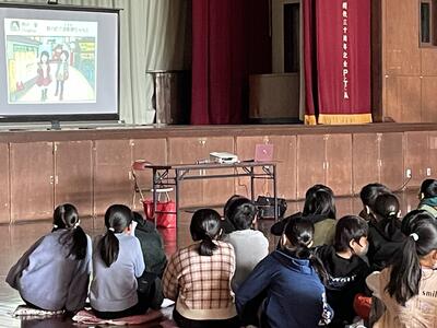 2月20日、講師の方をお招きして、3年生を対象として『明日の自分を大切にする』のテーマでSNS講座「デジタルシティズンシップ教室」が開かれました。
