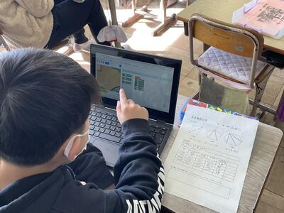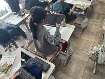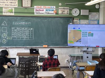 5年生の算数の様子です(2月9日)。『多角形の性質を知ろう』の学習で、タブレットを使っています。