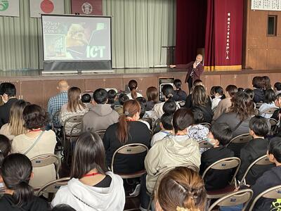 12月20日の水曜日、講師の方をお招きして、4・5・6年生を対象としてSNS講座「デジタルシティズンシップ教室」が開かれました。講師の先生からは、ICTやSNSを「どう使うかを自分で考える」とテーマが示されて、便利なICTやSNSの、善き使い手、社会の担い手なるために自分で考える、ということについてお話がありました。