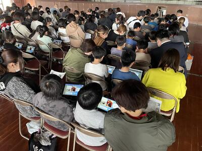 他の先生たちも参観して、タブレットの効果的な活用について研究を深めました。