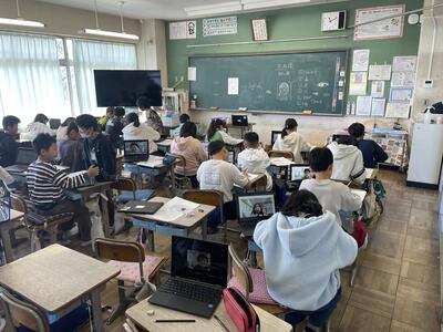 子供たちは、1人1台のタブレットを操作しながら、事前に講師の方から送られた画像などの情報をもとに、自分で考えたり、大人と話し合ったりしました。