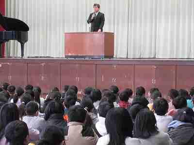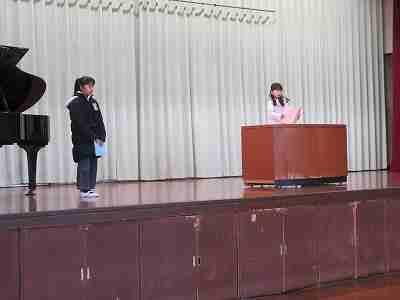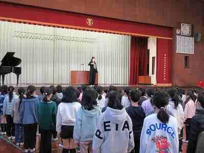 今日は音楽朝会がありました。体育館の冷たい空気の中に、きれいな歌声が流れてきました。