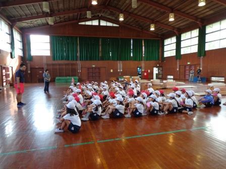 昼休みに跳び箱教室が行われました。今日は、開脚跳び5段を17人の子どもたちが跳べるようになりました。