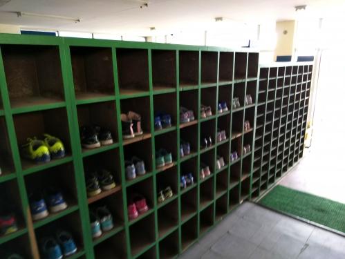 太陽がいっぱいの後の4年2組の下駄箱の様子です。どの子もしっかりと揃えてしまっています。正善あたり前のことにも、はき物をそろえます。という項目が入っています。これからも続けてほしいです。