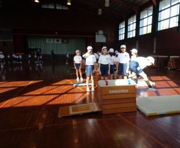 跳び箱教室がありました。30分ほどの短い時間でしたが、教える方も教わる方も、どんどん上手になっていきました。