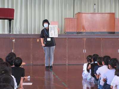 10月の全校朝会がありました。校長先生からは、『仁』という言葉から、相手を思いやる心の大切にさについてお話がありました。