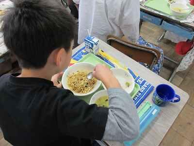 あと2日で運動会。運動会の練習にも熱が入ります。練習を頑張ってお腹が空いた子どもたちが楽しみにしているのは、給食の時間です。今日も給食をおいしくいただきました。