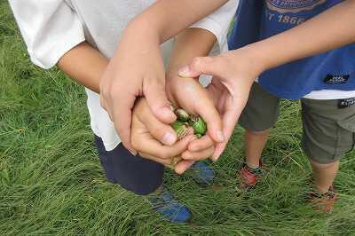 公園では、遊具で遊んだり、野原で昆虫やカエルなどを探したりと楽しい時間を過ごしていました。