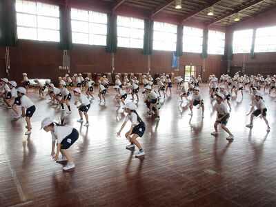 体育館では、5・6年生が運動会練習に取り組んでいました。