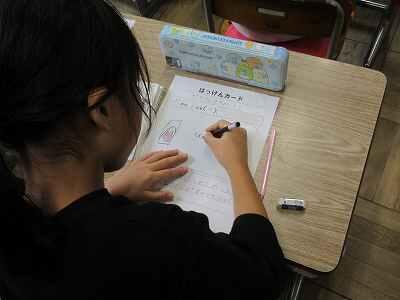 3年生は外国語の時間。アルファベットの学習をしていました。