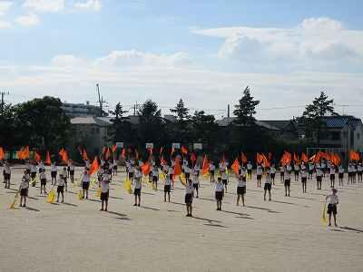 今日は業前時間から1時間目にかけて、運動会の全体練習を行いました。開会式、応援合戦、閉会式の練習を行いました。子どもたちの気持ちも盛り上がってきたようです。