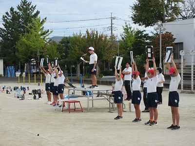 今日は、運動会で行う応援合戦の練習をしました。朝から子どもたちの元気な声が校庭に響き渡りました。