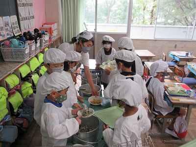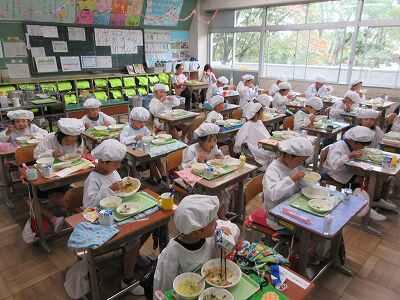 あと2日で運動会。運動会の練習にも熱が入ります。練習を頑張ってお腹が空いた子どもたちが楽しみにしているのは、給食の時間です。今日も給食をおいしくいただきました。