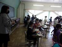 学校栄養士の先生から給食のことについて教えていただいたのち、教室で、準備の仕方を確認しました。