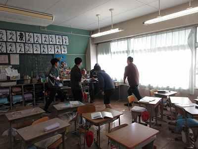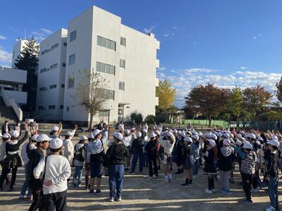 今日は、不審者対応避難訓練を行いました。職員が不審者役となり、教室へ侵入。児童は素早く避難し、職員がさす股をもってその場に駆けつけました。