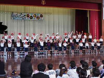 本校からは、6年生の1クラスが代表として出場し、会場で2曲を披露しました。