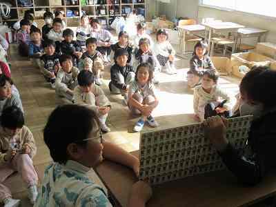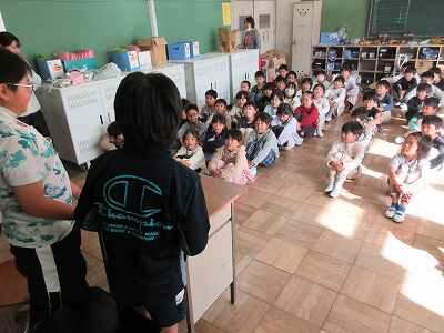 図書委員が、2年生に読み聞かせをしてくれました。図書委員のお兄さんが、がんばって本を読み聞かせてくれたので、2年生も一生懸命に聞いていました。