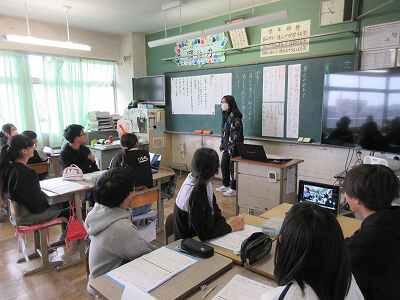 研究協議会では、他校から参加されている先生方とともにグループ協議を行い、様々な視点から授業についての意見交換が行われ、東部教育事務所の指導主事の先生からご指導をいただきました。