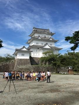最初の見学地となる小田原城に到着しました。集合写真ののち、クラスごとに見学します。