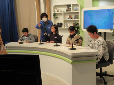 スキップシティでは、実際にニュース番組を制作したり、映像による空飛ぶ絨毯の体験をしたりしました。
