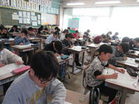 続いて、全校縄跳びで前とび、後ろと、駆け足とび、時間とびをがんばりました。