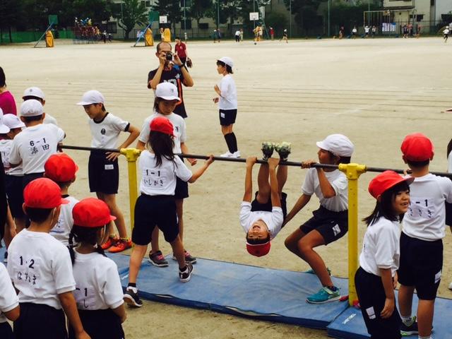 2学期から始まった体力向上教室。今日は鉄棒です。異学年による教え合い(補助)様子がとても温かく、一生懸命に逆上がりに取り組んでいました。