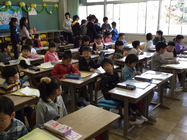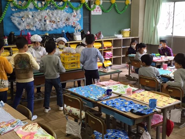 話をよく聞いて、しっかりと準備ができました。ミニ給食はパンと牛乳だけでしたが、とてもおいしそうに食べていました。