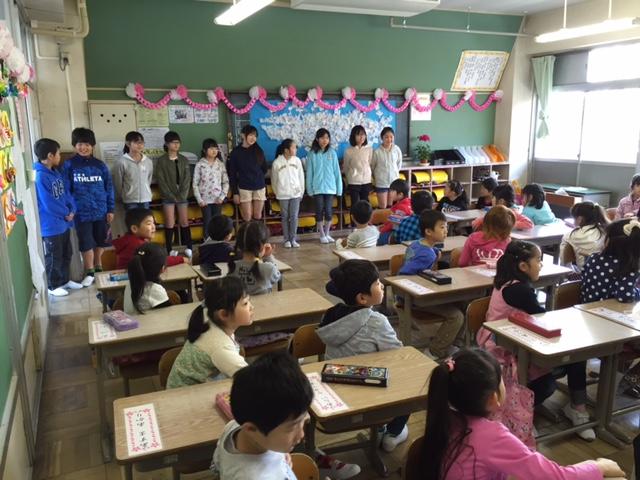 また、6年生が歓迎の言葉や校歌合唱を行ってくれました。入学式準備も含め、とてもよく頑張ってくれました。ありがとうございました。