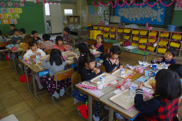 ミニ給食が終わり、1年生も今日から、完全給食になりました。