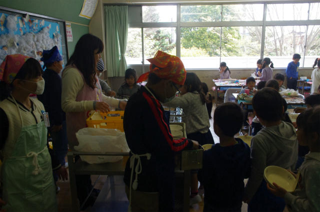 当番の子を中心に、みんながんばって配膳をしていました。とてもおいしそうに食べていました。
