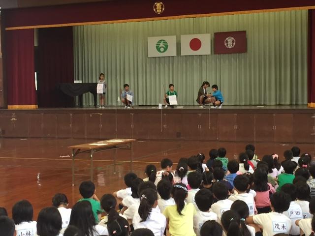 今朝はあいにくの雨ですが、朝の活動は読書タイムでした。晴耕雨読、こんな日は、静かに読書に勤しむのがよいです。中学年には、お話会の方々がお話を聞かせてくださいました。