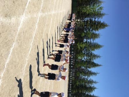 業前の時間に、開閉会式の練習をしました。短い時間で、動きをそろえることができました。