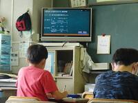 4年生の算数。1億よりも大きな数を考えています。臨時休校中にもしっかりと学習を進めていたので、答え合わせの時にも活発に手が挙がっています。