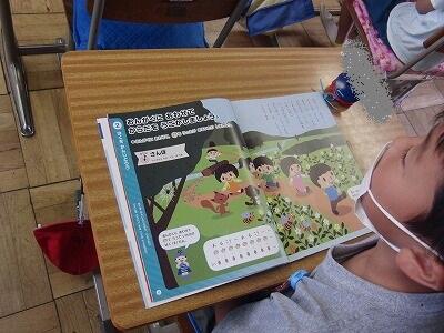 音読はささやく声で。でも、しっかりと正しく読めています。