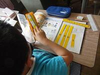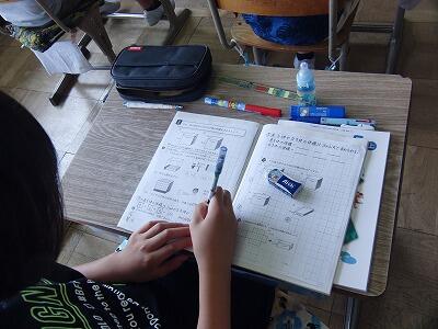 同じく5年生。算数で直方体と立方体の体積を求めています。